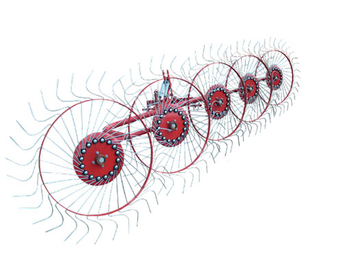 Тракторные грабли "Солнышко" Agromech 5 секций - для обработки трав различной степени влажности в прокосах и подготовке к последующей уборке готового рабочего материала. 5 роторов.