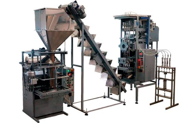 Полуавтоматическая линия фасовки и упаковки макаронных изделий в пакет подушка, стоячий пакет