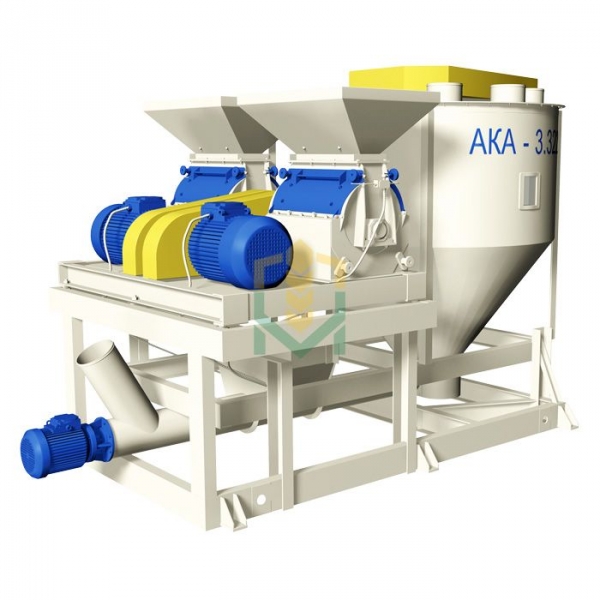 Фирма-производитель: Агрогрант Цена договорная Агрегат комбикормовый АКА-3.322 - это автоматизированная установка, предназначенная для приготовления рассыпного комбикорма из зернофуража (пшеницы, ячменя, кукурузы, гороха и др.) и белково-витаминно-минеральных добавок (БВМД) путем измельчения, электронного дозирования и смешивания компонентов.