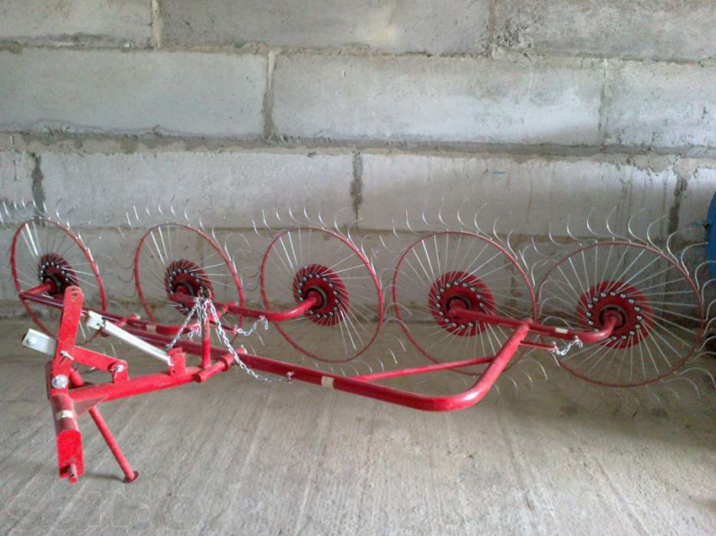 Страна-производитель: Турция Состояние: Новое Тип тракторных грабель: Грабли-ворошилки Цена договорная Грабли-ворошилки турецкие 5-колесные осуществляют сгребание в валки проявленной травы из прокосов, ворошения и оборачивания. Изготовлены из высокопрочной стали, имеют утолщенную раму и длинные толстые спицы. К раме на подшипниках крепятся 5 колес диаметром - 142 см.