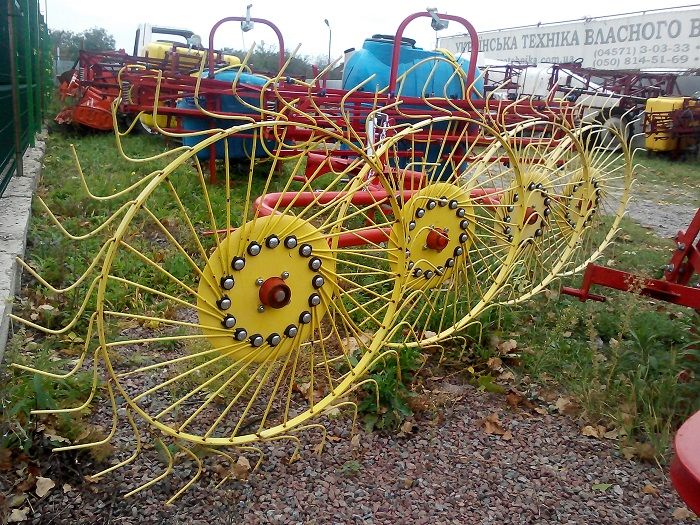 Страна-производитель: Турция Состояние: Новое Тип тракторных грабель: Грабли-ворошилки Цена договорная Турецкие грабли-ворошилки, цена указана за 4-х колесную модель,осуществляют сгребание в валки проявленной травы из прокосов, ворошения и оборачивания. Изготовлены из высокопрочной стали, имеют утолщенную раму и длинные толстые спицы. К раме на подшипниках крепятся 4 колеса диаметром - 142 см.